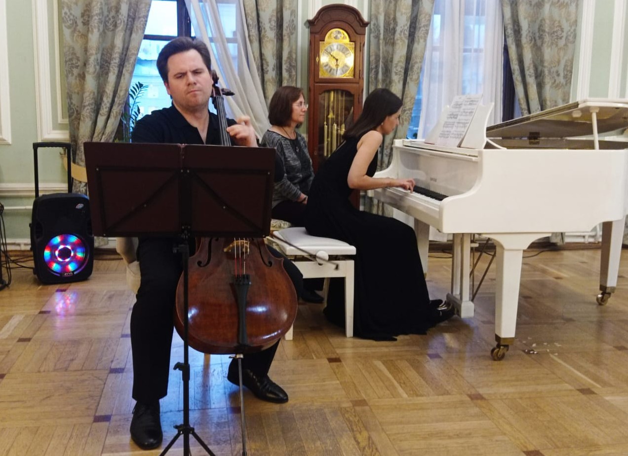 После светлой лирики и задушевных песен в зале зазвучали виолончель и рояль. Лауреаты Международных конкурсов Данила Попов (виолончель) и Анна Асташкина (фортепиано) блестяще исполнили сонату Фредерика Шопена для виолончели и фортепьяно.